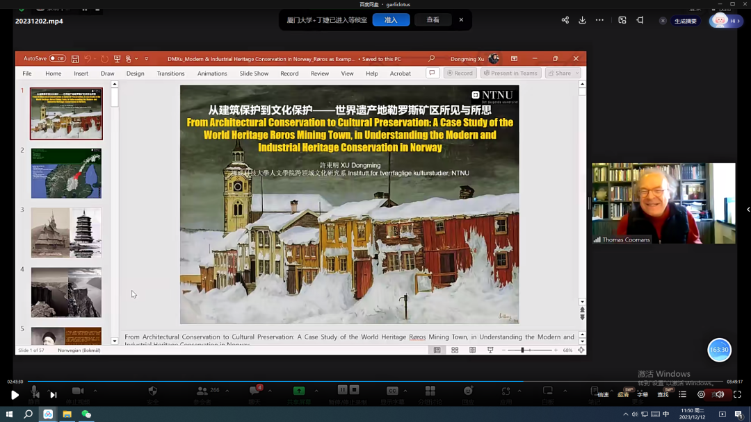挪威科技大学(NTNU)跨学科文化研究系高级研究员许东明分享了《从建筑保护到文化保护——世界遗产地勒罗斯矿区所见与所思》,回溯挪威建筑遗产保护体系的历史理论背景,以世界遗产地勒罗斯矿区保护实践为例,探讨其保护理念变化演进与价值经验积累——梳理建造与遗产的关系,乃至不同时期工艺在今天遗产保护修复工作中的角色。