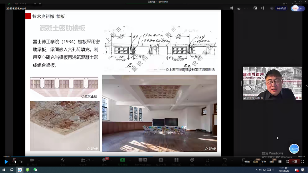 华东建筑设计研究院有限公司历史建筑保护设计院宿新宝高级建筑师的讲题为《西风东渐中的上海营造:近代建筑技术及其特征的价值认知》,以文献挖掘结合保护工程案例,梳理上海近代建筑常用非传统材料、结构和构造,呈现传统到改良、舶来到自产以及现代建筑施工业逐步取代传统匠作营造业过程,从技术史角度探究上海近代建筑特征与价值。