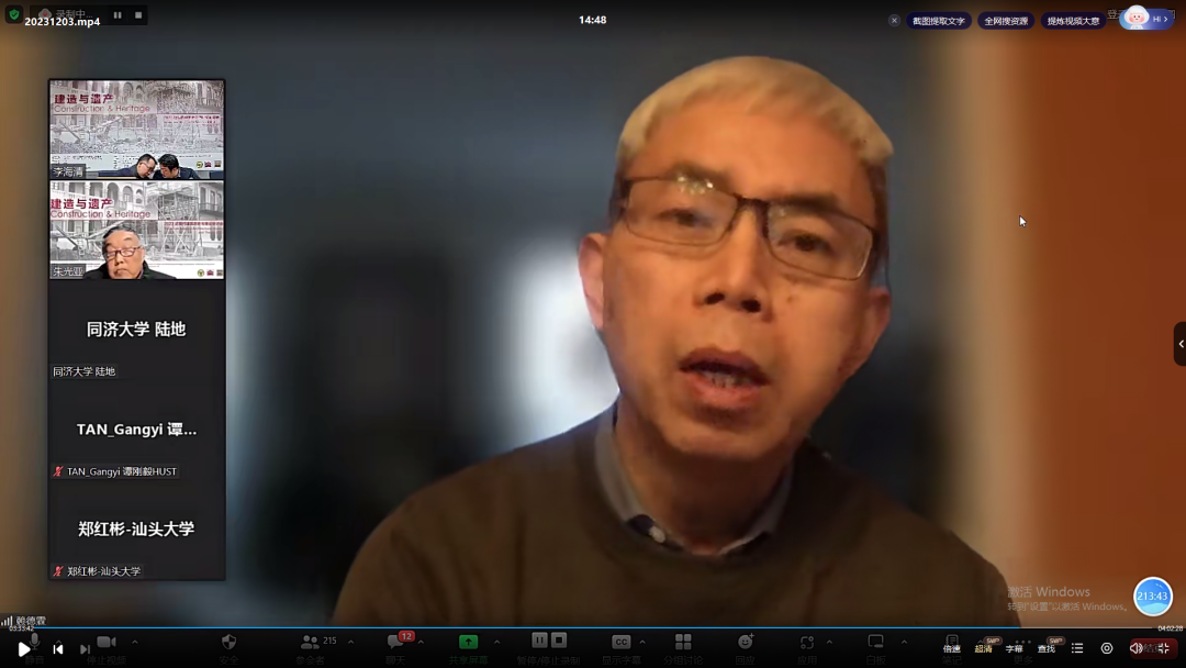 李海清教授主持开幕式及首场演讲,阐明此次会议主旨是以建造作为交流与讨论的切入口,关注其如何形塑建筑遗产本体、底定建筑遗产价值、为建筑遗产继续发展而赋能。