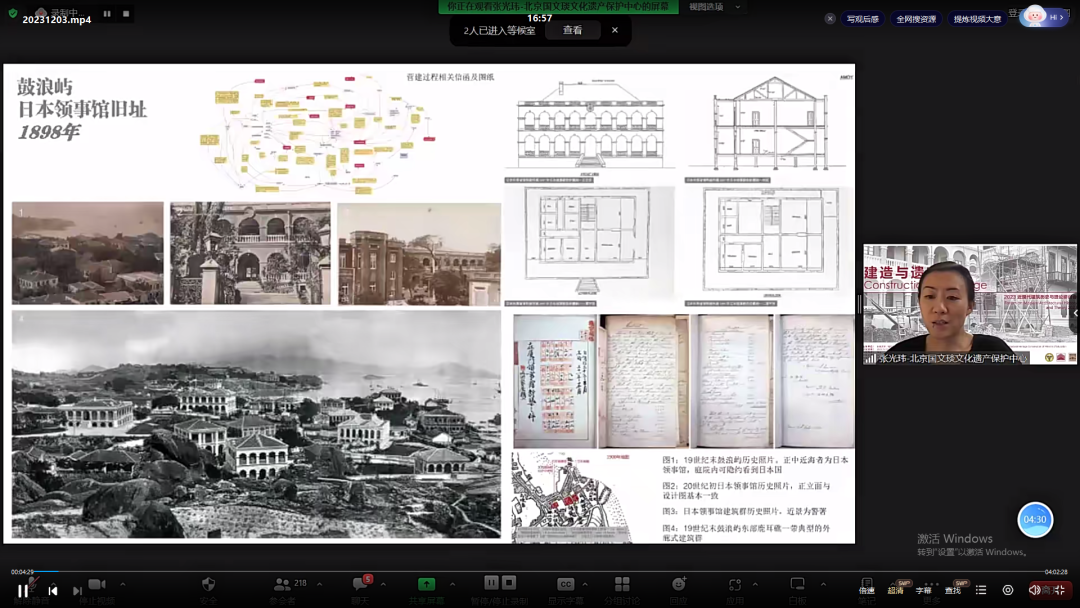 复旦大学文物与博物馆学系侯实老师分享了《价值在行动中产生并变化——重庆聚兴诚银行的建造、遗产化与保护历程》,聚焦重庆聚兴诚银行,将当下保护修缮工作放在历史中观察,其材料、工艺体现典型的时代、地域特征,历经不同时期的改建、加建、修缮,每一次“建造”都是对其某一方面价值的增益或减损。