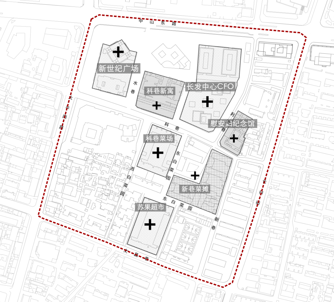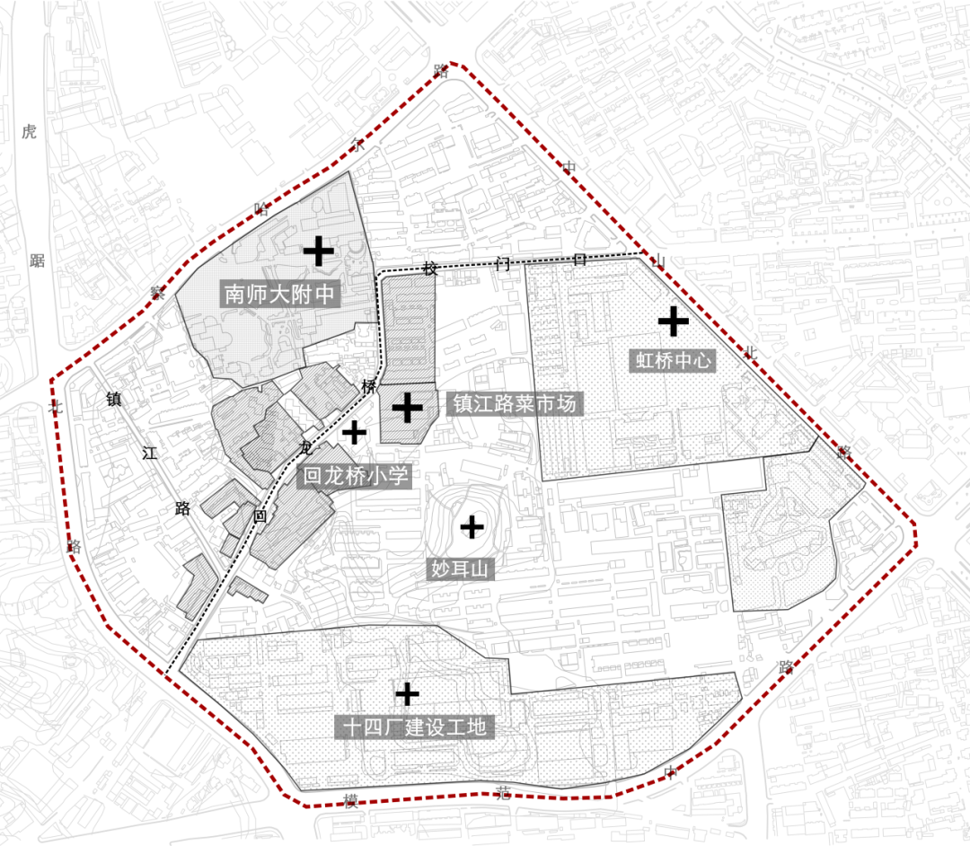 在老城区的腹地,15分钟步行可达范围内,红庙关联着丰富和活跃的商业、市政公共设施、历史和风景区等城市功能区域,红庙深度链接在南京内城市中心的城市环境中,也为城市所共享。