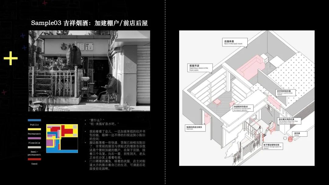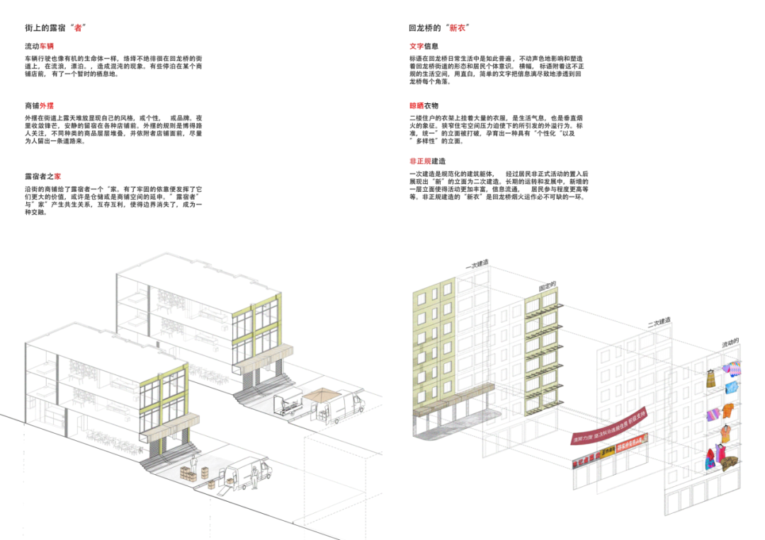 对于回龙桥这片土地,非正规生活空间的背后显现的是丰富多元的社群关系。空间的重构也是社会结构的重构。如果回龙桥的线性街道空间是城市生活的土壤,内向而宽松的空间管治是其生长条件,那么回龙桥的种子——坚实的内核也许是一种岁月积淀下稳固而包容的社会结构、时空交叠下的异质性融合、游离于边界外的非正式生长。这种空间的自主意识,与日常生活相关,因此才能持续更新、生生不息。这也是城市空间再生产的根本动力。而回观整个城市,还有无数像回龙桥一样被遗忘的城市角落已经在平凡的日常中长出了新芽。何为真正的公共空间?空间设计是否能生发真正的烟火气?当土壤失效,这颗新芽究竟是我们研究的样本,还是岌岌可危的标本?