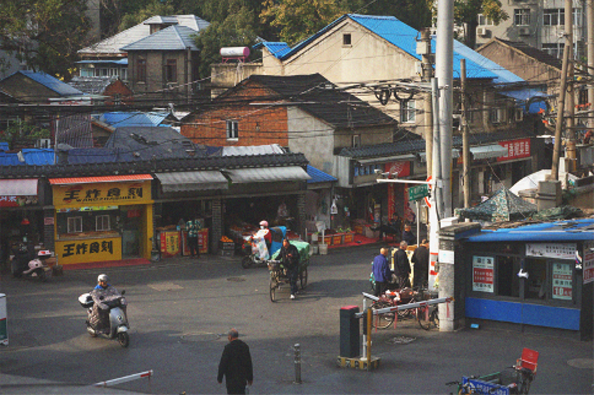 而在这片秩序里,三个异质性的节点(镇江路菜市场,回龙桥小学和镇江路街口)也形成了变奏。这三个节点空间在整体街道序列上起到串联和脉冲作用,且构建了许多美好的模式语言。