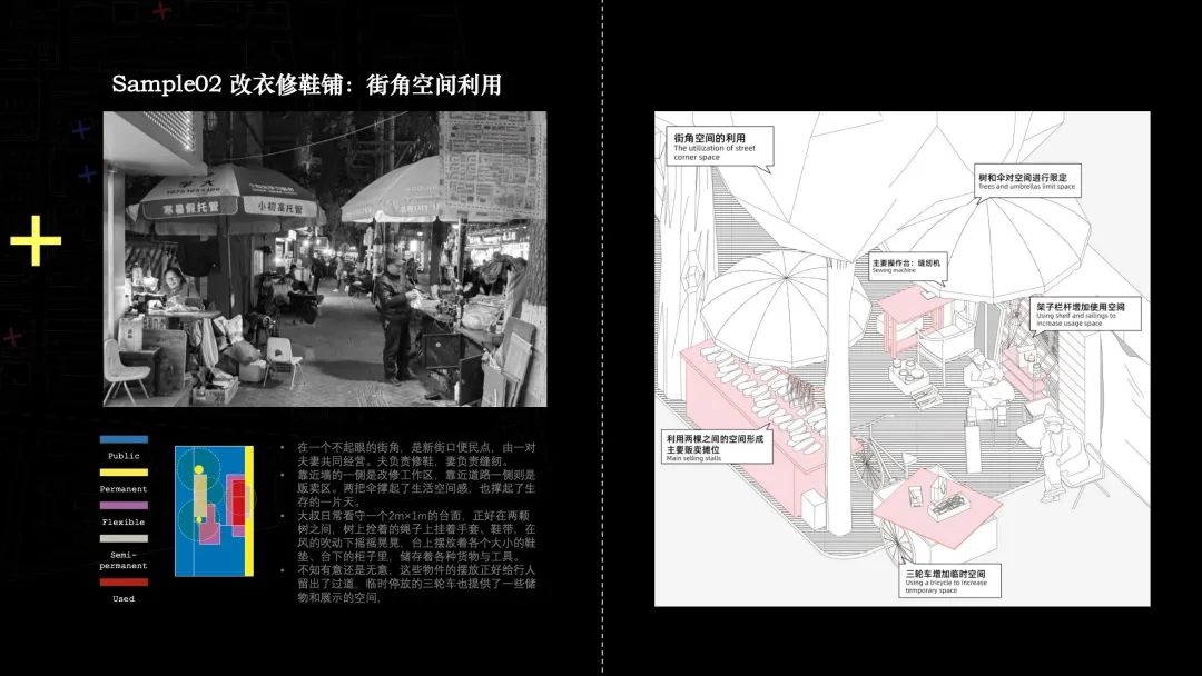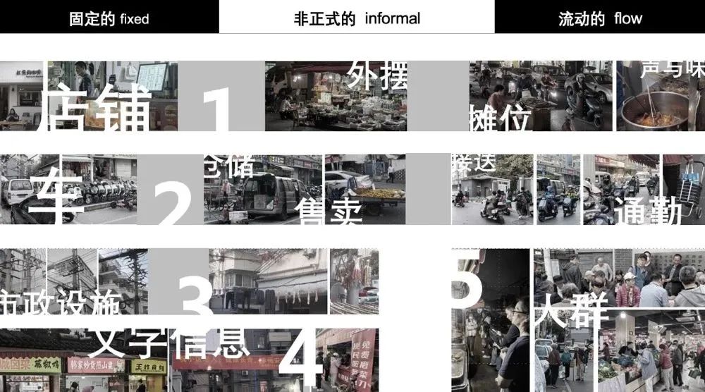 非正式(Informal)成为人的行为与街道的一种高度和谐的 “关系 ”;也可以理解为从“混沌 ”里发现“秩序 ”的过程。随着管理制度的缺位,在这条街道上的烟火里,我们识别出这里生长的公共性活动,他们是非正式的存在,但也是最原真性的表露。