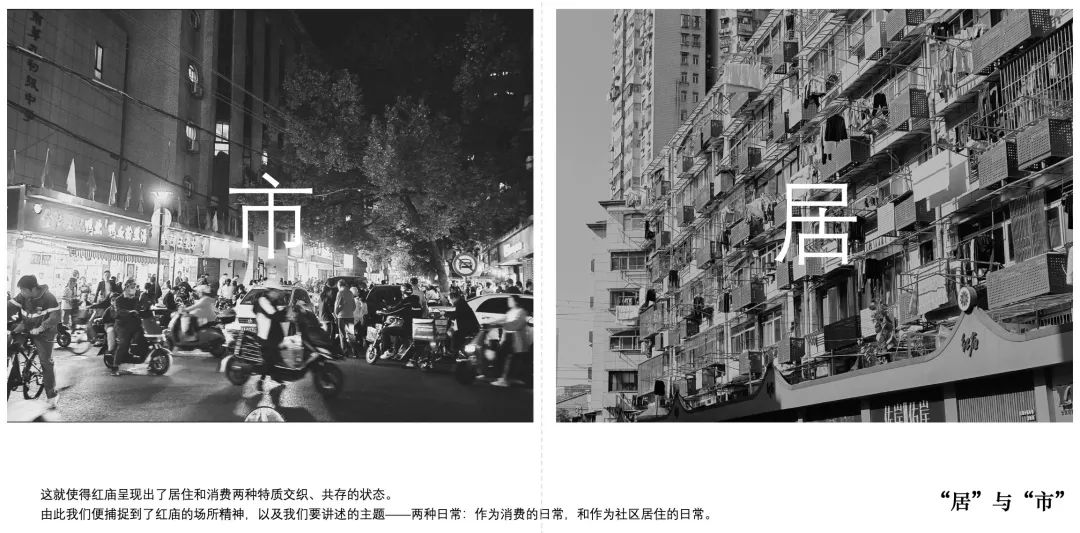 向内的居住性日常和向外的消费性日常在加厚的空间叠加在一起。移动的车辆、行人,堆放的东西,招牌,店铺的活动,居住的活动等等交织在一起,人们的需求转化为具体的空间再生产的行为,呈现出熙熙攘攘的热闹的烟火气。