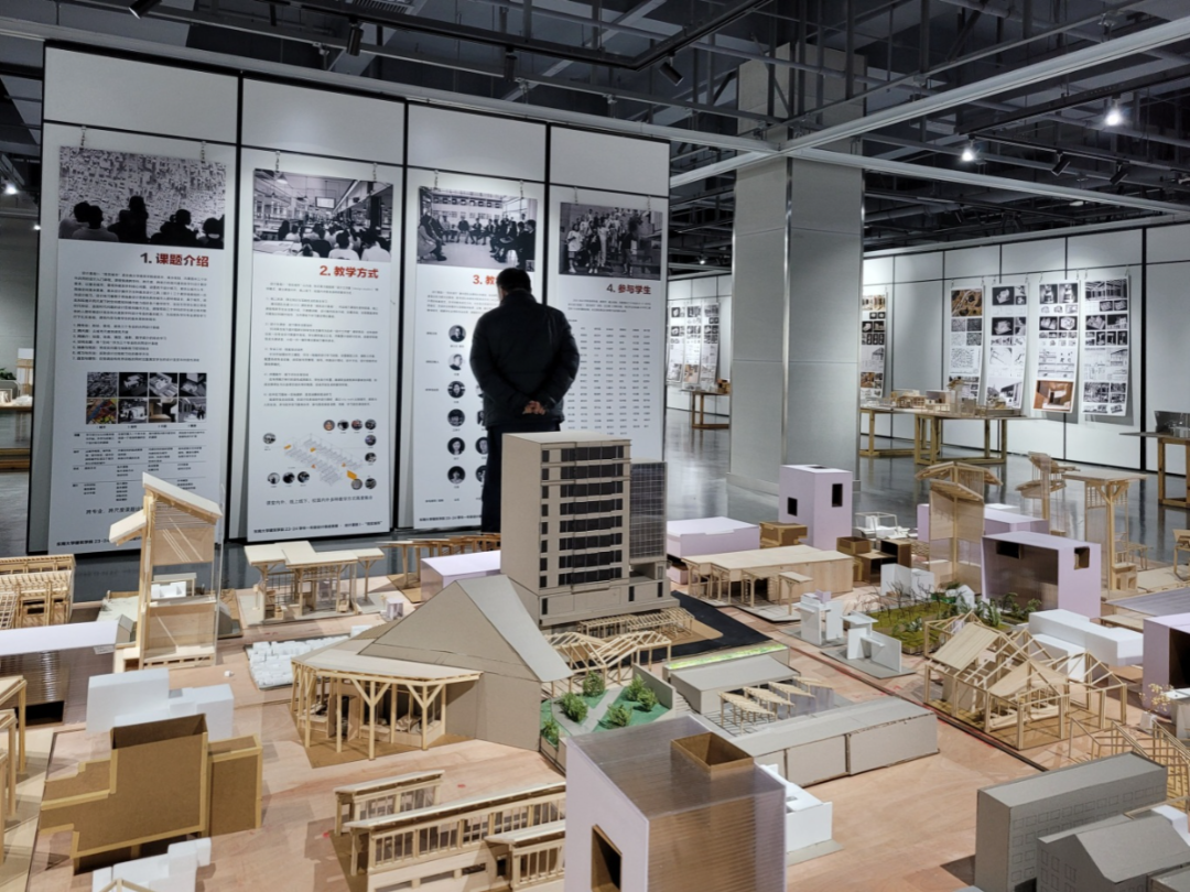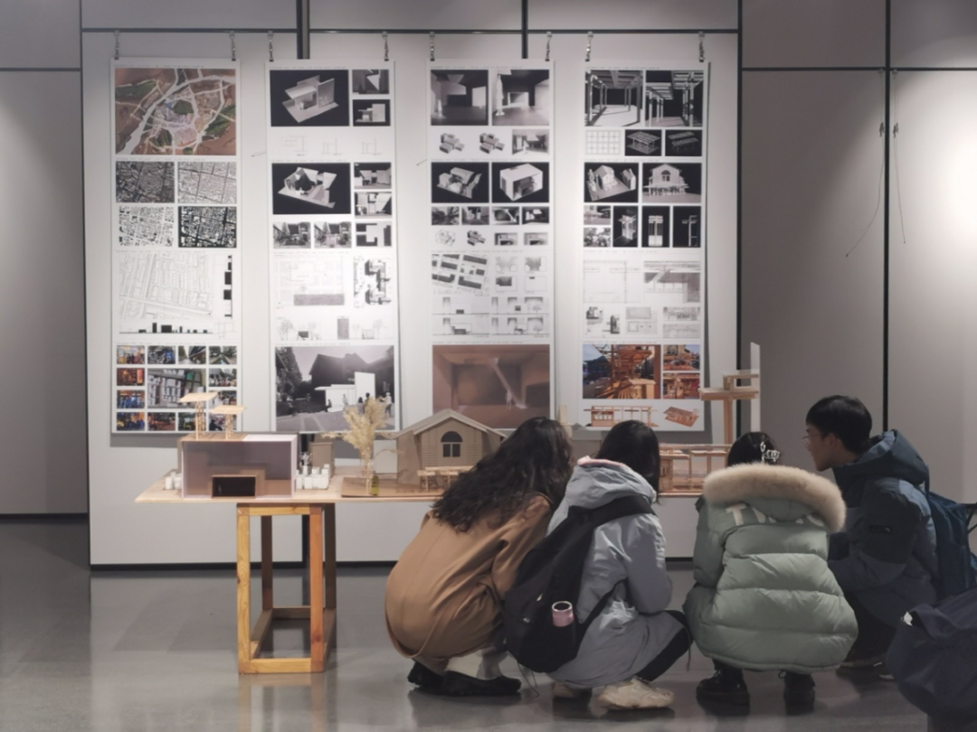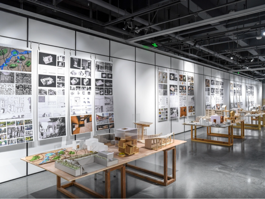 4.评图展厅:线下评价共享空间在专用展厅举行阶段性成果展示,学生自行布置。邀请职业建筑师评委参加评图,形成全体师生与从业者交流共享的氛围,促成开放互动的教学环境。