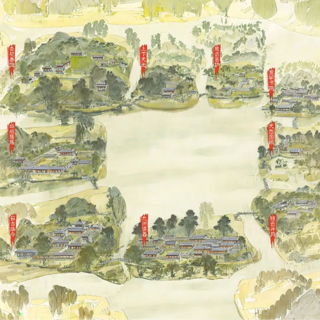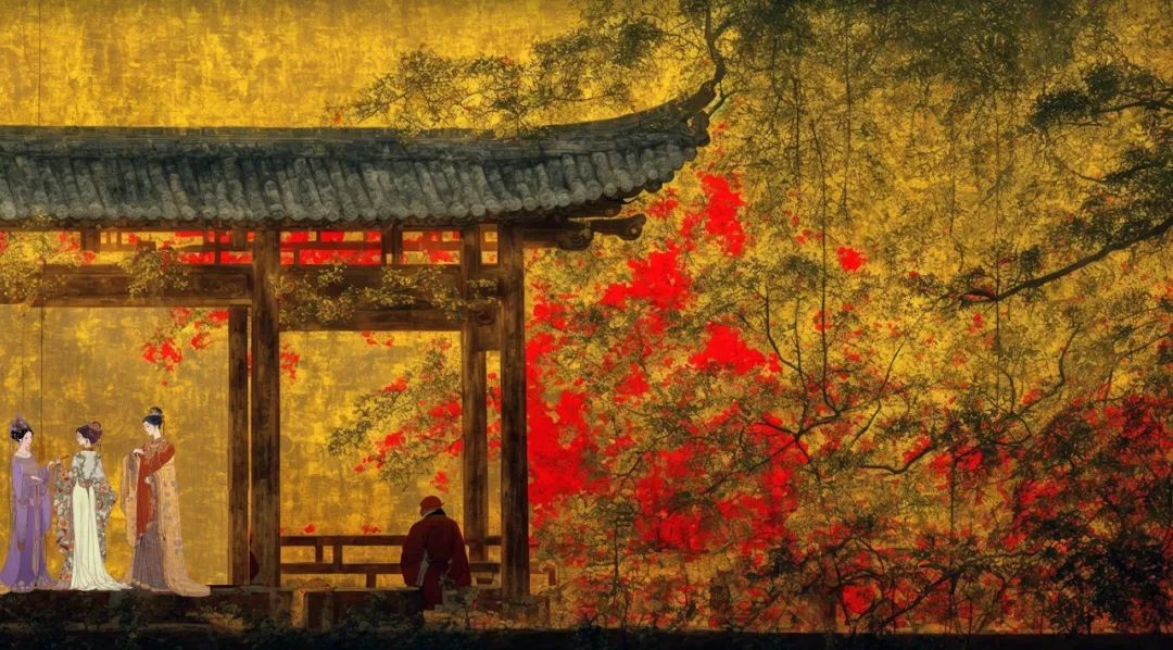 选择一个历史上曾经存在或仅存在于文献中的园林,根据文献资料用AI重现该园林形态;选择一个耳熟能详的故事片段,使其自然的发生在重现的园林中,每个故事场景需对应于总图中的位置和观察方向。