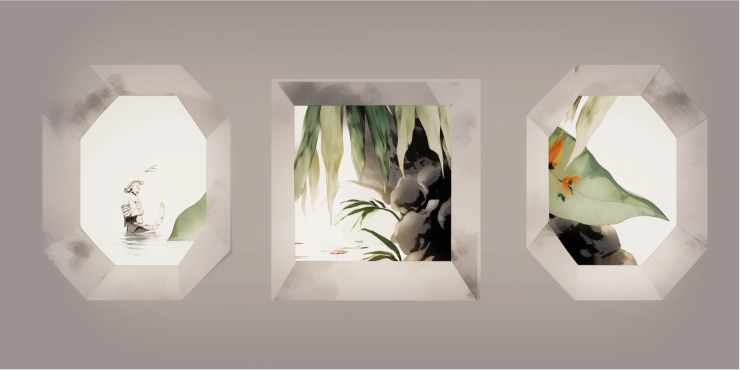 2023年“生成艺术——AI造园”工作营由建筑运算与应用研究所华好老师团队主持,面向二年级升三年级的学生,在暑期展开,为期四周,包括2周艺媒与2周认知实习。工作营采用多模态AI技术进行园林设计与活动场景生成,利用文字、图像、视频等方式进行艺术表达。多模态AI将不同的感知模态(图像、语音、文本等)结合起来,利用人工智能技术进行跨模态的分析和生成。通过使用Midjourney、Stable diffusion等图像模型,设计师面临全新的设计边界与可能性。中国古典园林的悠久历史、丰富的诗词歌赋、历代传承的山水画,为AI园林创作提供了极大的想象空间。