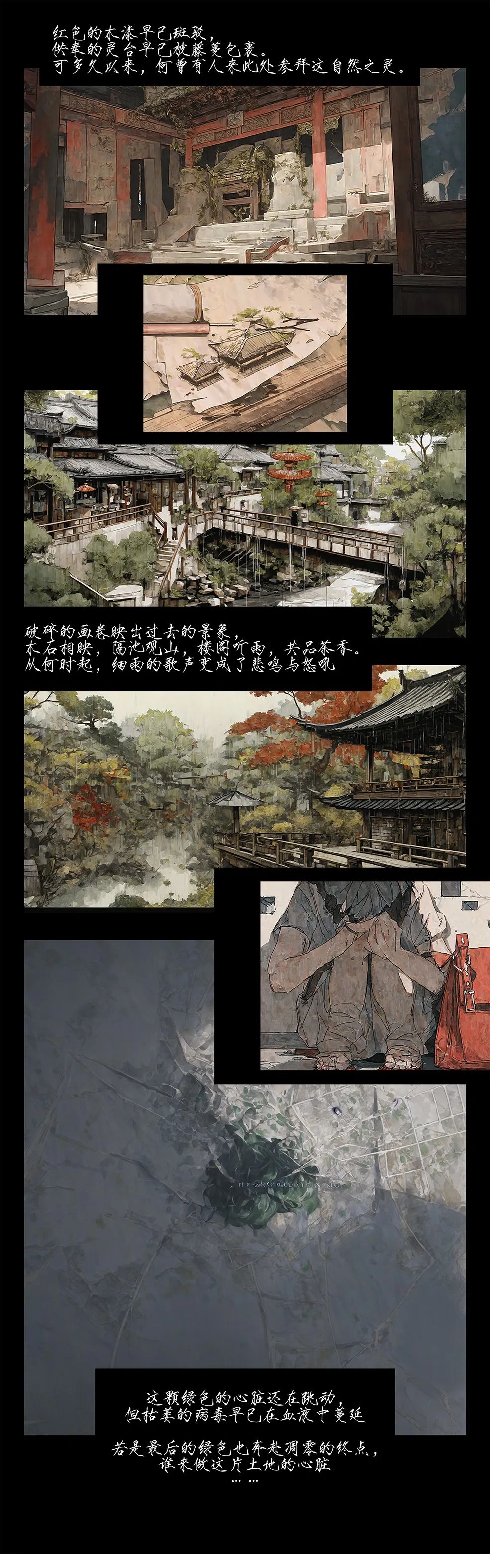 构思一个发生在园林里的故事,用AI工具生成故事板/漫画/连环画/长卷。