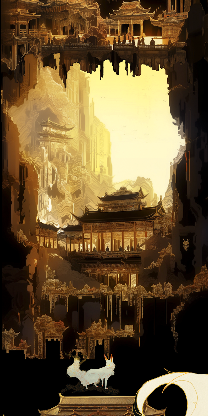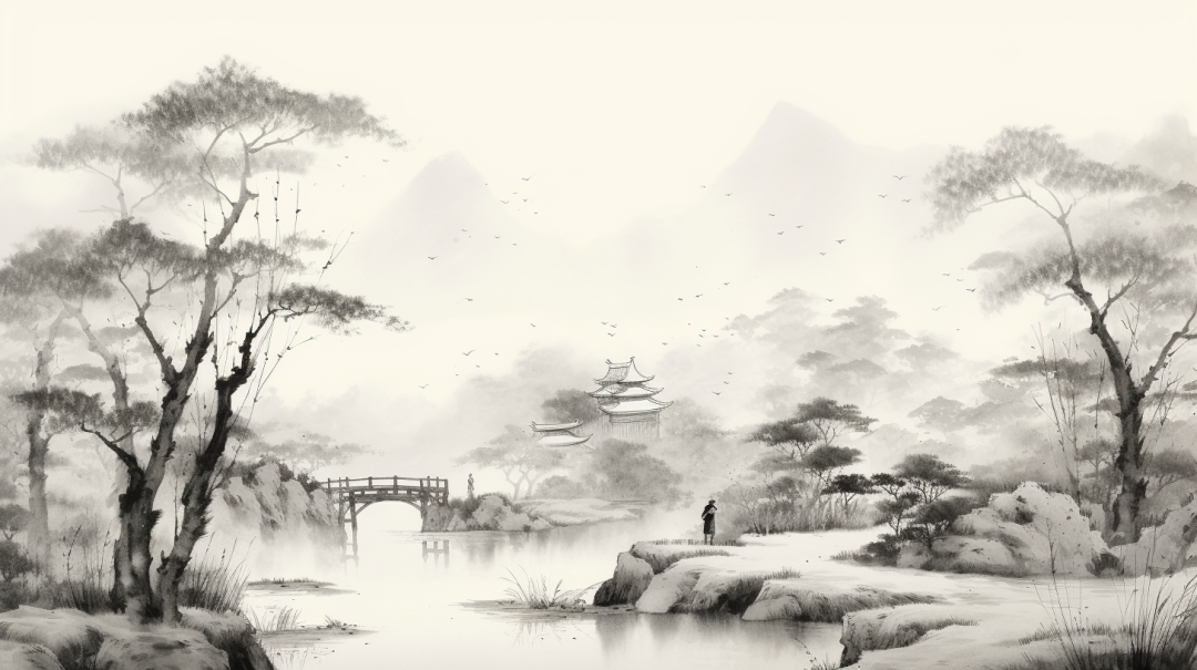 在古代文献中选择一段描述园林的文字(诗句、山水画上的题跋、园记),用英文对其进行扩写,生成四组图像。每一组图像包含大中小三个尺度(全景图、局部透视、细节刻画)的三张图片。