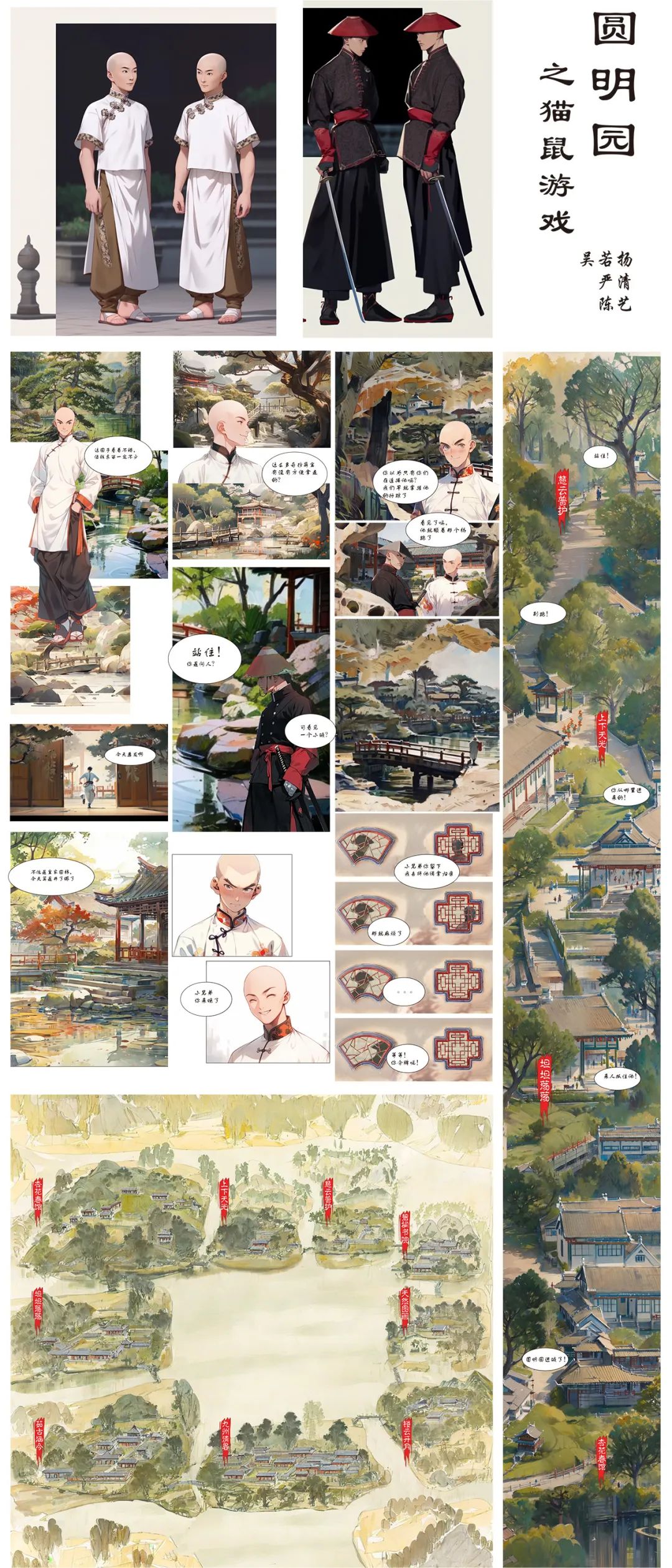 收集园林的文本与图像素材,用AI生成园林设计、活动场景、人物形象。