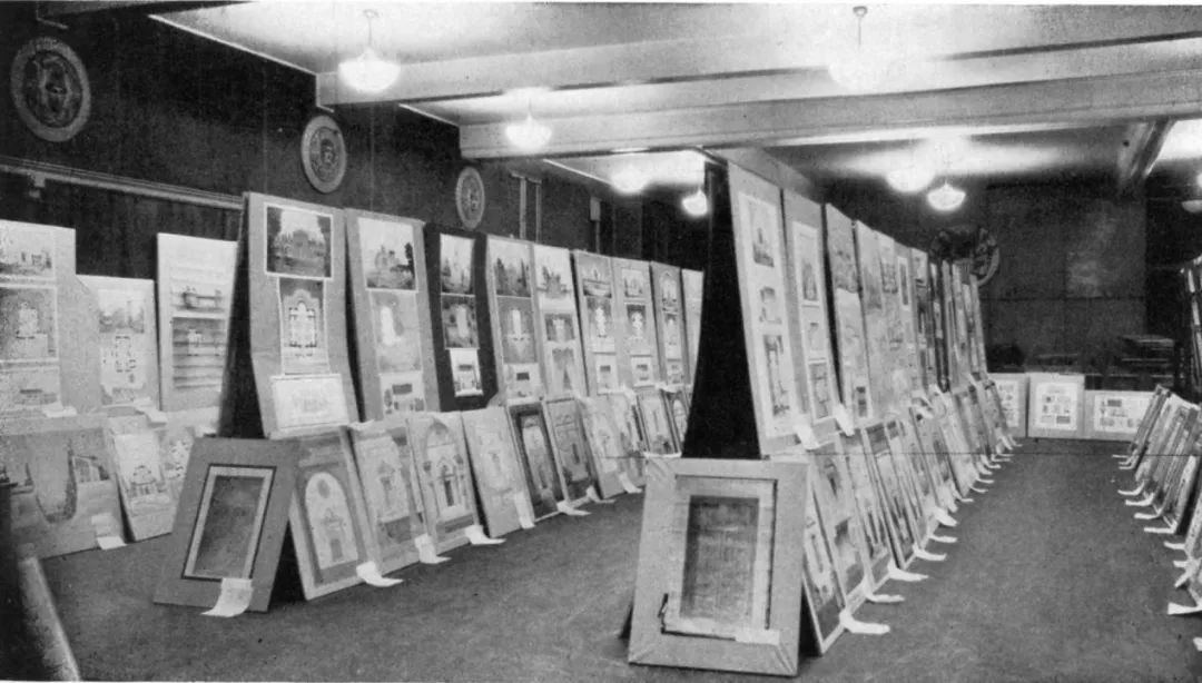评图展厅陈列来自全美各地工作室的学生设计图纸
