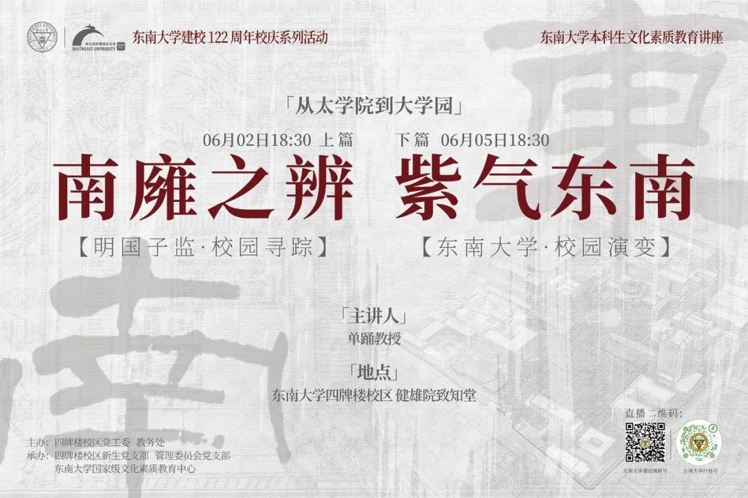 上 篇06月02日18:30南㢕之辨「明国子监·校园寻踪」-下 篇06月05日18:30紫气东南「东南大学·校园演变 」-