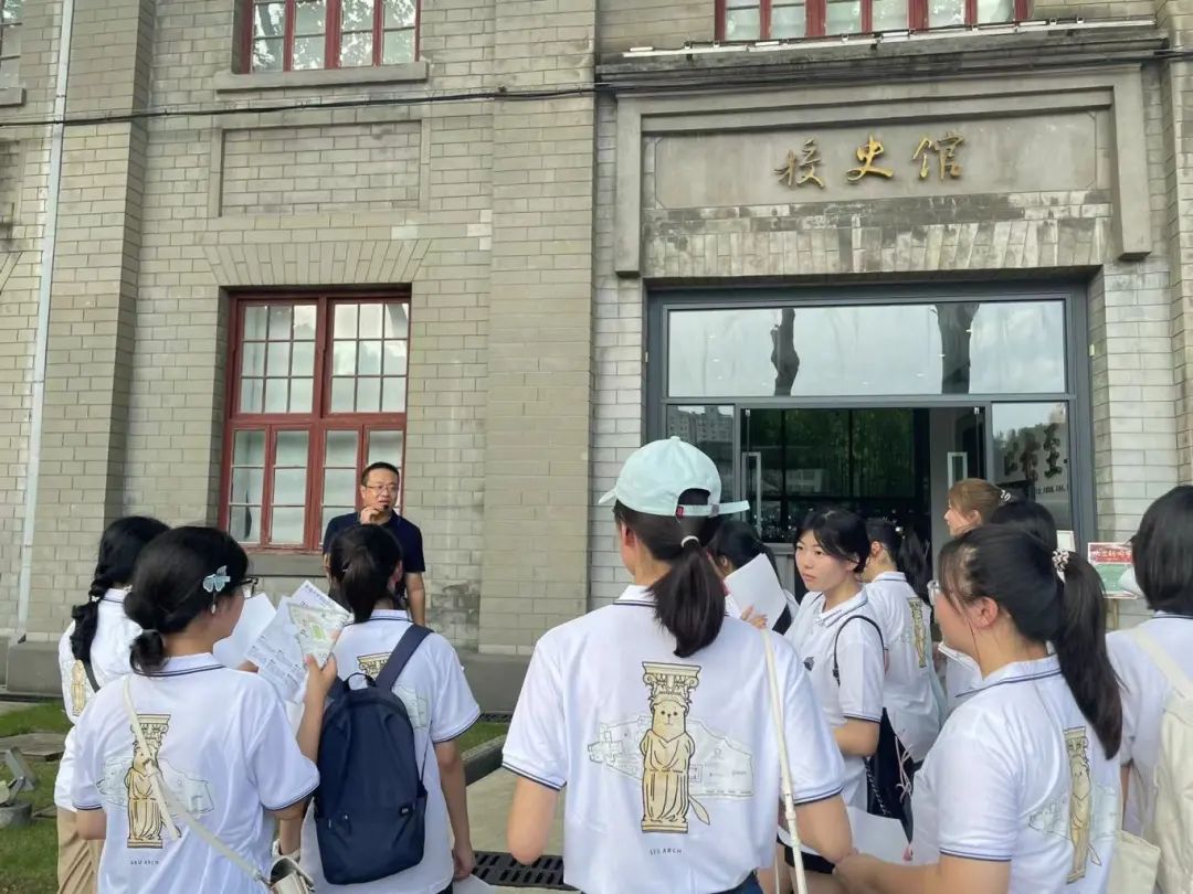 当日下午,为了使新生同学们尽快熟悉校园环境以及建院生活,建筑学院教师汪晓茜、袁旸洋、董亦楠和史北祥带领全体新生及家长畅游拥有百年历史的四牌楼校区,参观了独具特色的大礼堂、梅庵、院史馆、国际建成环境创新实验中心、亚洲建筑档案中心等。四位老师向同学们详细介绍了校区内建筑的悠久历史,也向同学们展示了东大建院的建筑传承。希望同学们浸润在这底蕴深厚的建筑环境中,能够传承经典,守正创新,成为行业的领军人才。