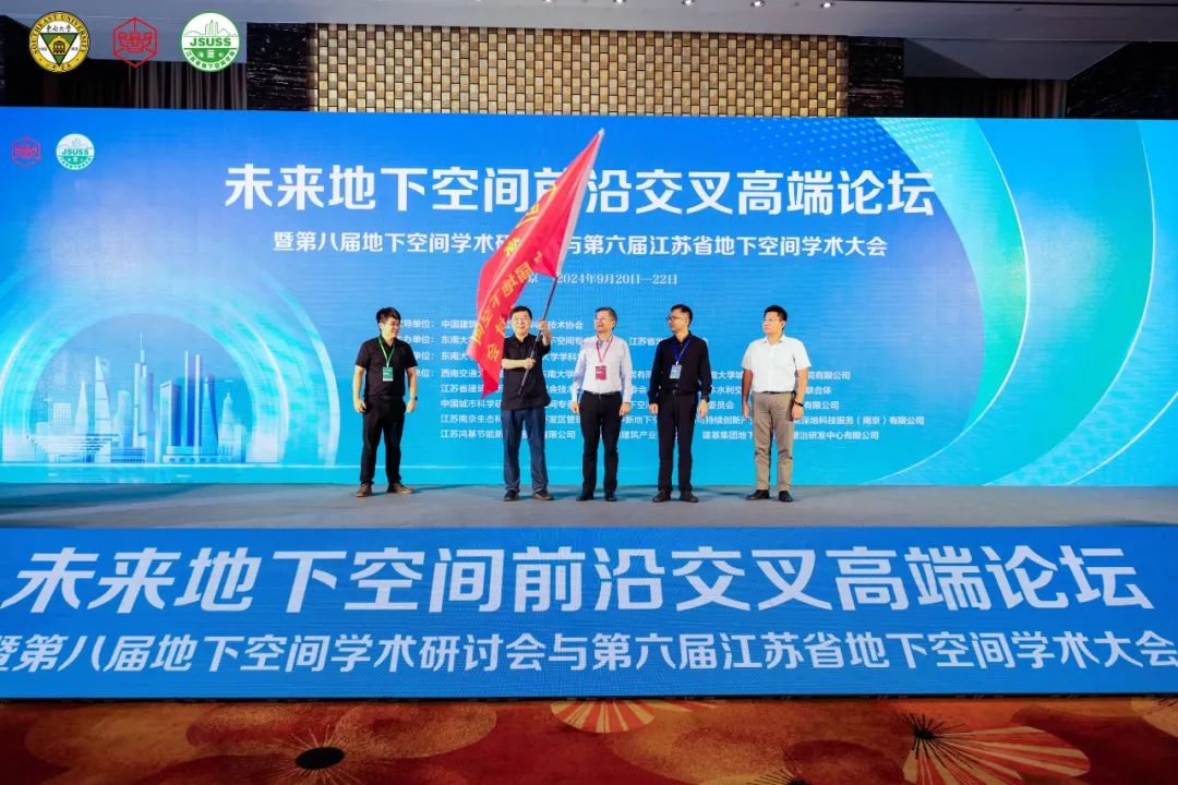 论坛结束后,举办了地下空间研讨会会旗交接仪式,沈中伟理事长宣布第九届地下空间研讨会举办方为华建集团华东建筑设计研究院有限公司。在全场嘉宾的见证下,本届主办方代表党委书记冷嘉伟副理事长将会议旗帜交给下届主办方代表华东建筑设计研究院总经理牛斌常务理事。冷嘉伟副理事长对关心、支持和帮助本次论坛的各位领导、专家学者、会务人员以及志愿者表示衷心感谢,牛斌常务理事对本届研讨会的成功举办表示热烈祝贺,并相约各位明年汇聚上海。