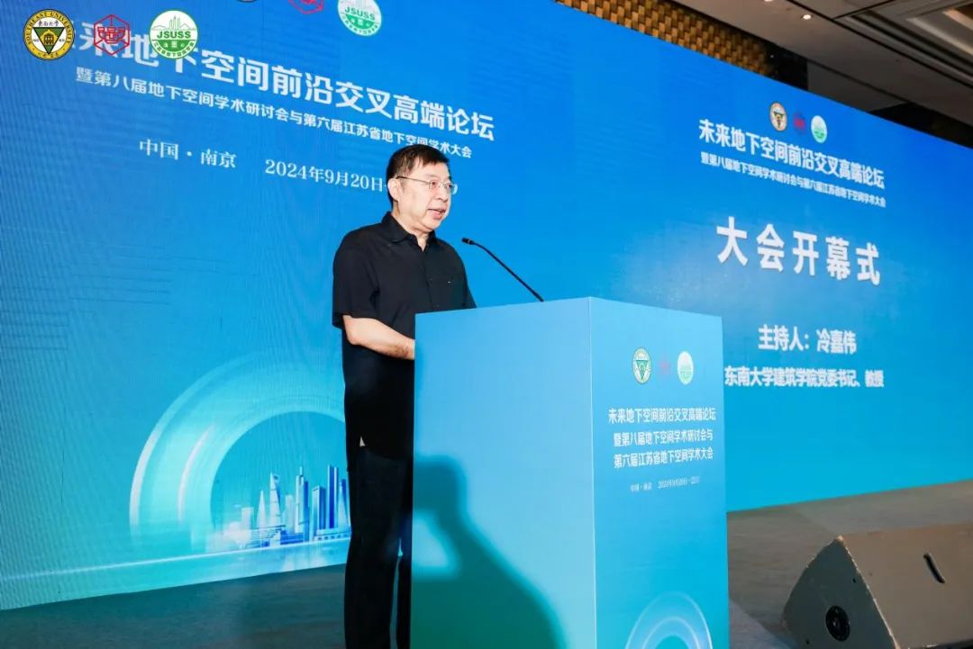 2024年9月21日上午,由东南大学联合江苏省地下空间学会共同主办的“未来地下空间前沿交叉论坛”开幕式在江苏南京金陵饭店隆重举行。莅临大会并致辞的有:东南大学党委书记左惟,江苏省政协副主席、中国城市规划学会副理事长周岚,江苏省科协二级巡视员杨文新,中国建筑学会秘书长、全国工程勘察设计大师李存东,江苏省地下空间学会理事长黄富民。出席开幕式的还有:中国工程院院士、东南大学教授王建国,中国工程院院士、同济大学教授朱合华,中国工程院院士、东南大学教授刘加平,中国工程院院士、中国建筑设计研究院有限公司总建筑师李兴钢,新加坡工程院院士、国际岩石力学与工程学会会士周迎新,欧洲科学与艺术院院士、苏州大学教授沈景华,国家杰出青年科学基金获得者、入选国家级人才计划人才、东南大学首席教授李建春,全国工程勘察设计大师、广东省建筑设计研究院首席总建筑师陈雄,全国工程勘察设计大师、中国建筑西北设计研究院总建筑师赵元超,全国工程勘察设计大师、中国人民解放军陆军工程大学教授陈志龙,全国工程勘察设计大师、内蒙古工业大学建筑学院院长张鹏举,西南交通大学建筑学院院长沈中伟等来自全国各地高校和企业的专家学者,党委书记、教授冷嘉伟主持开幕式。