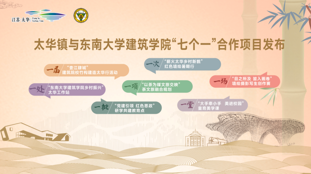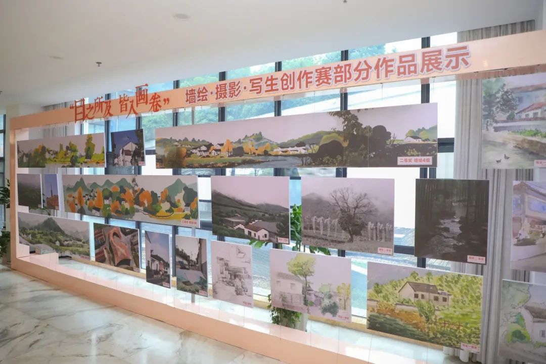 在揭牌仪式上,发布了与太华镇“七个一”合作项目,分别是:一届“壹江肆城”建筑院校竹构建造太华行活动、一次“薪火太华乡村新貌”红色墙绘暑期行、一处“校地共建乡村振兴”太华工作站、一项“以茶为媒文旅交映”茶文旅融合规划、一场“目之所及 皆入画卷”墙绘·摄影·写生创作赛、一批“党建引领 红色思政”研学共建教育点、一堂“大手牵小手 美进校园”童育美学课,并现场展示了“目之所及 皆入画卷”墙绘·摄影·写生创作赛获奖作品。