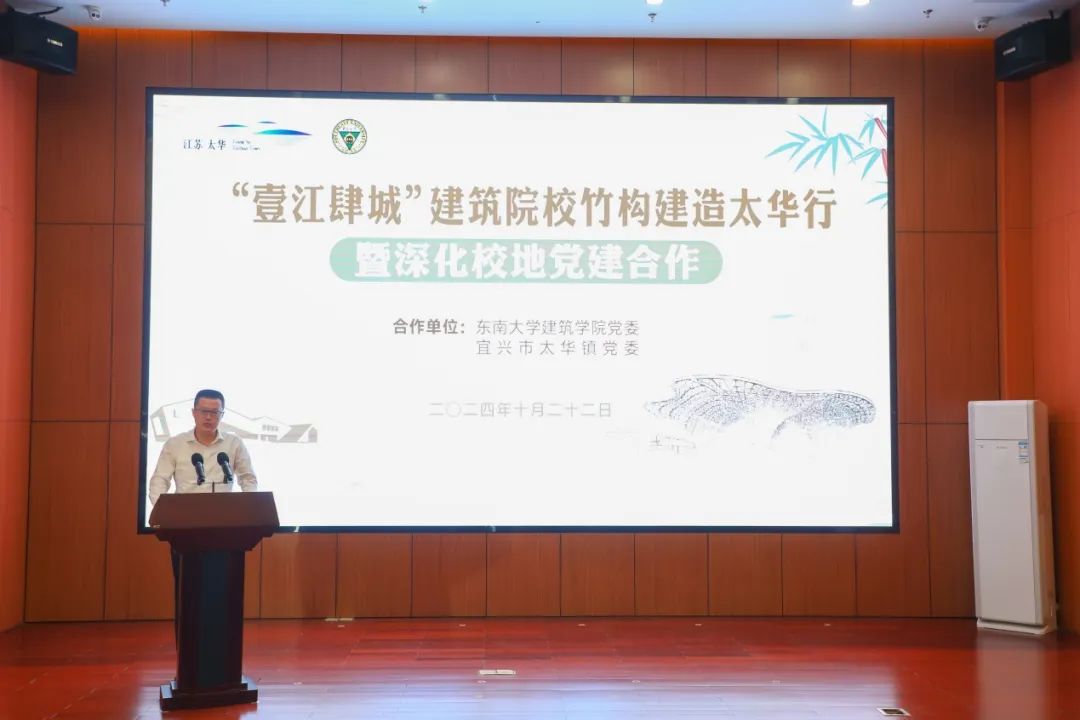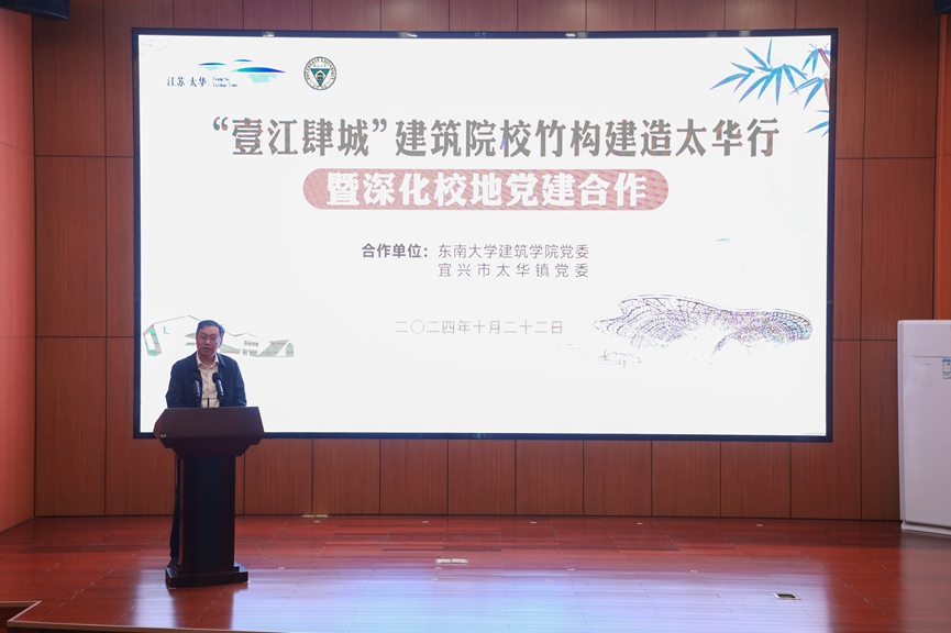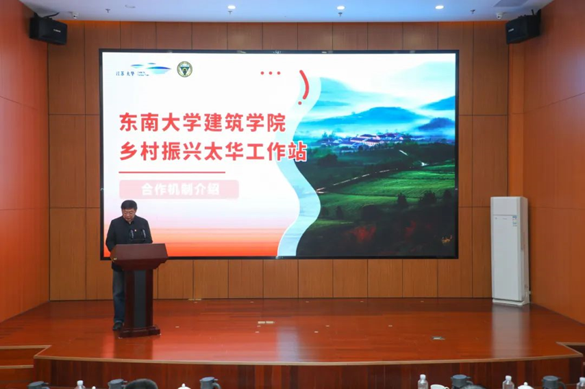 东南大学党委副书记邢纪红在致辞中指出,东南大学一直以来秉承家国情怀和社会责任的红色基因,致力于培养德才兼备的社会主义建设者,积极回应国家乡村振兴战略,是东南大学师生义不容辞的责任。太华镇党委书记潘国强在致辞中表示,太华镇党委政府合作共建乡村振兴太华工作站,将汇集各职能部门负责人之力,共同打造一套“系统指导、科学管理、高效运行”的组织体系,树立高校乡村振兴工作站的新范式。党委书记冷嘉伟介绍了“乡村振兴”太华工作站的组织架构、工作内容和合作机制,宜兴市委常委、组织部长钱怡作了总结讲话。