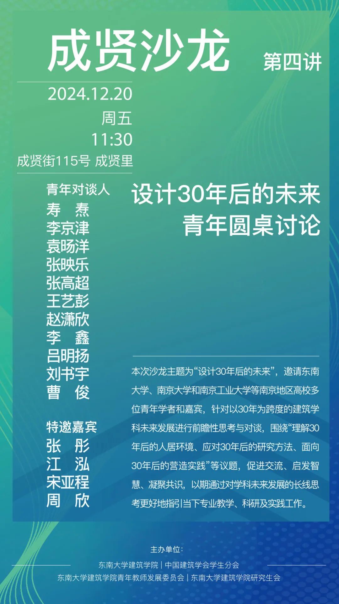 青年是学术传承与开拓创新的希望和动力。2024年是东南大学“学术年”,建筑学院特开设“成贤沙龙”,长期延请青年学者分享见解,探讨前沿,激发互动,促进交叉,推动建筑学科及交叉领域的交流创新与多元发展。