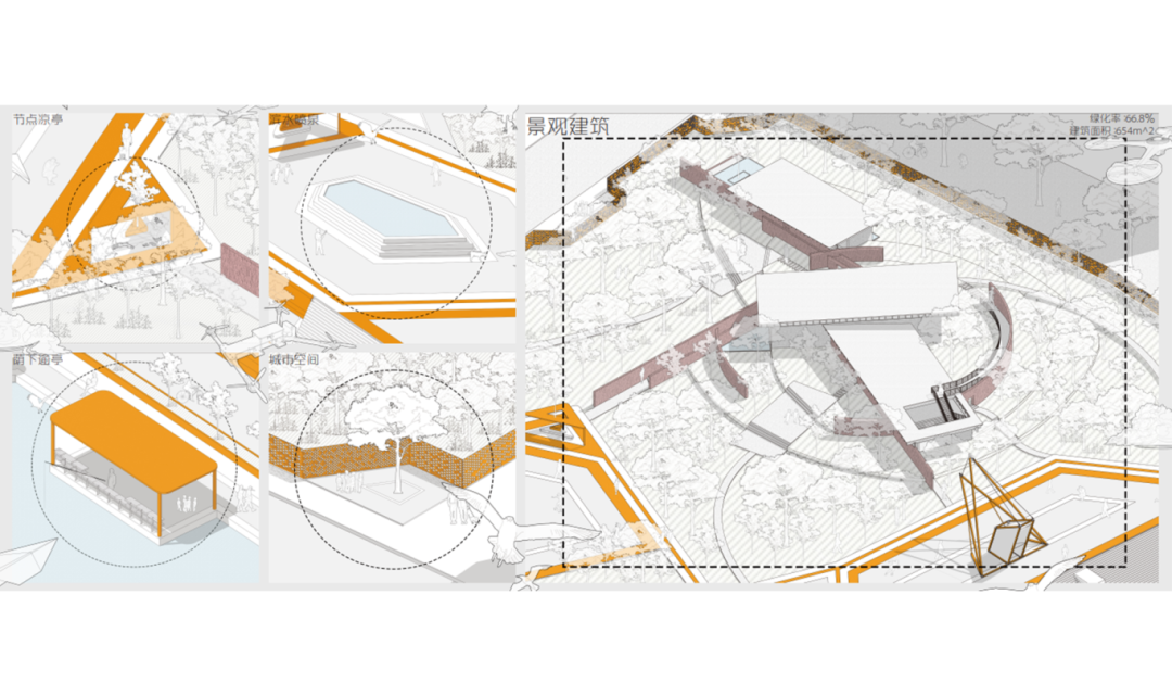 2.塑造景观场域:掌握场地-空间-建筑-结构-材料联动深化设计与表达的能力。思考如何提炼场地特征并表达出来,如何让景观设施与建筑藏与显,并且尺度合宜,材质和谐,与环境相得益彰;