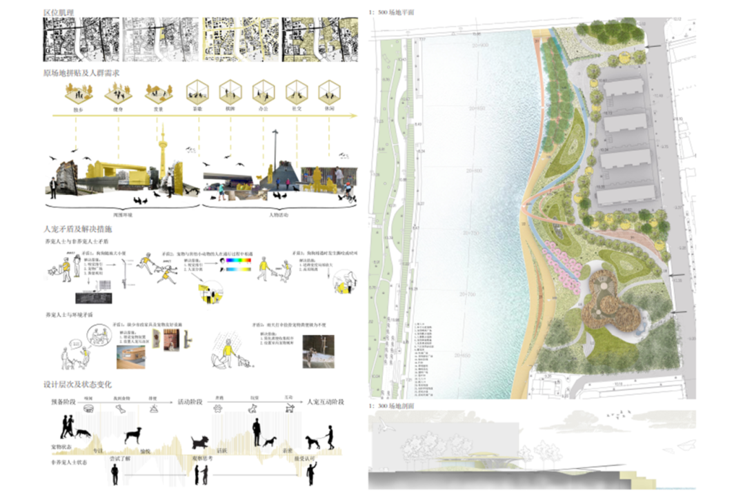 3.理解设计目标:以人为本,思考如何利用场地规划组织场地中不同人群的行为,并满足无障碍设计的需求。