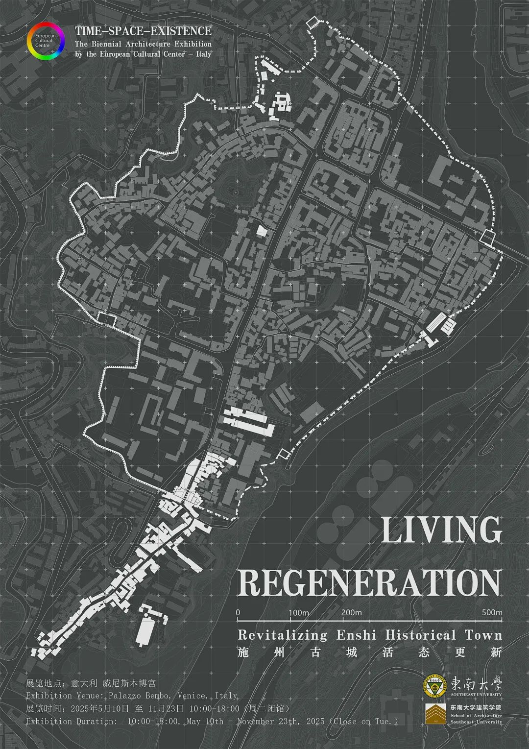 欧洲文化中心(European Cultural Center-ltaly) 2025“时间-空间-存在”(TIME-SPACE-EXISTENCE)建筑双年展将于2025年5月10日至11月23日期间在意大利威尼斯开展。本届展览主题为“修复、再生和再利用”(Repair, Regenerate, and Reuse),院长张彤教授团队作品“施州古城活态更新”(LIVING REGENERATION: Revitalizing Enshi Historical Town)受邀参展,建筑学院共有20名师生受邀参加5月8日至9日于威尼斯马里纳萨花园、本博宫、莫拉宫举行的展览开幕和新闻发布活动。