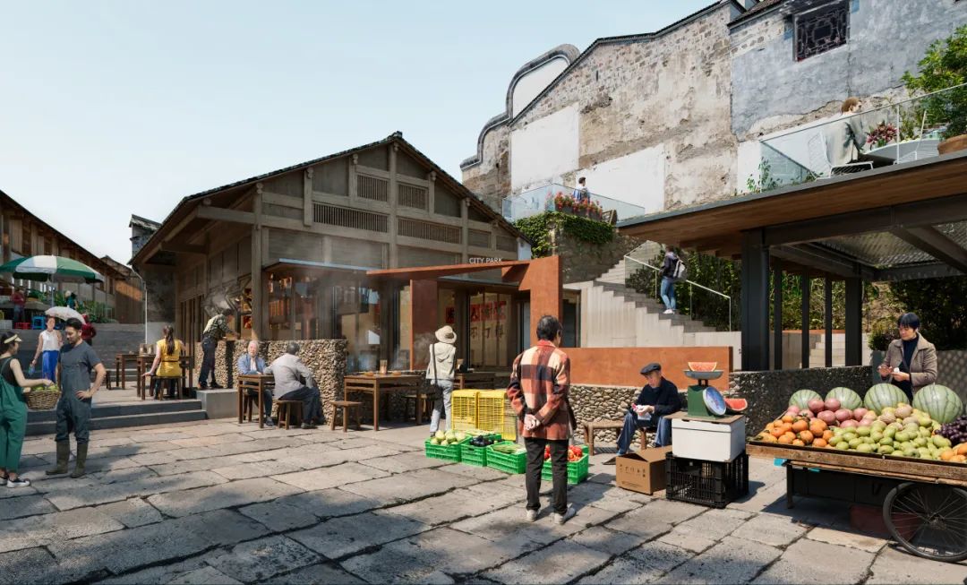 城乡街位于施州古城南门外,依山势蜿蜒而上,作为湖北省历史文化街区,不仅是施州古城山水格局的重要空间锚点,同时承载着明清商驿文化与近代市井生活的双重记忆。在无序乱建及古城人口空心化双重冲击下,如今的城乡街正面临城市记忆拼图缺失的危机。更新设计通过大量研究和现场工作,对现有街区内建筑进行分级分类整治引导,通过点状激活和空间整理,写仿山城天街,激发烟火气息,塑造古城民俗文化体验长廊。
