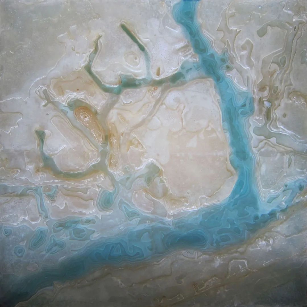 Water tank study model of Jamaica Bay’s Floyd Bennett Field, testing the design of a proposed marsh inlet.